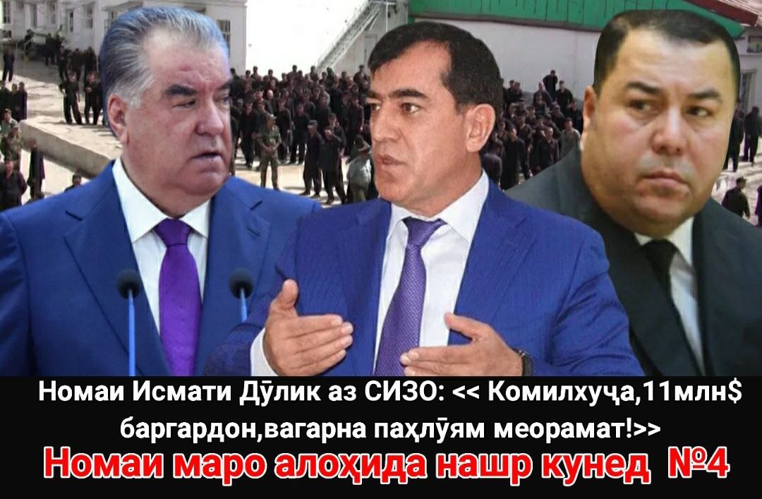 Аз сӯҳбатҳои дохилӣ маълум мегардад, ки 11 миллион долларро аз Исмати Дӯлик шахсан Комилҳуҷа бо ҷиянаш Фаррух гирифтааст. Акнун барои аз байн бурдани Исмат дар дохили СИЗО нақша кашида шудааст.