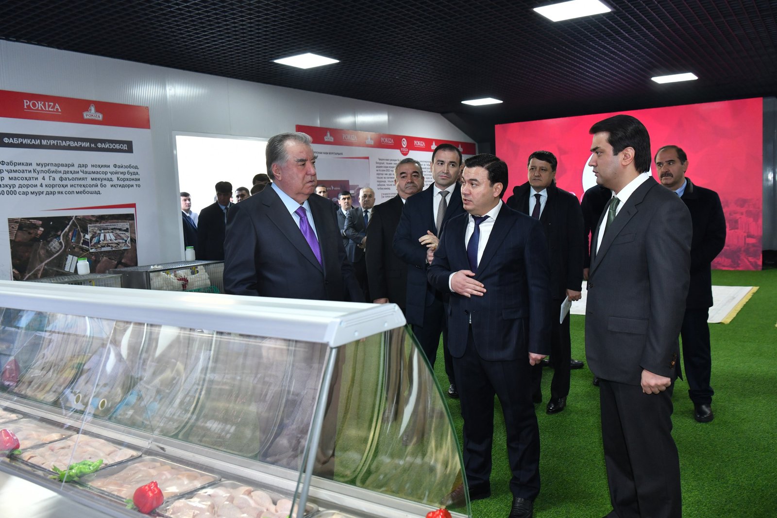 Ҳамчунин, Сарвари давлат Эмомалӣ Раҳмон аз намоиши маҳсулоти корхона дидан намуда, бо шароит, имконот ва ҷараёни коркарди маҳсулот фосилавӣ шинос шуд. Ба масъулон ҷиҳати боз ҳам беҳтар ба роҳ мондани фаъолияти корхона дастуру тавсияҳо дод.